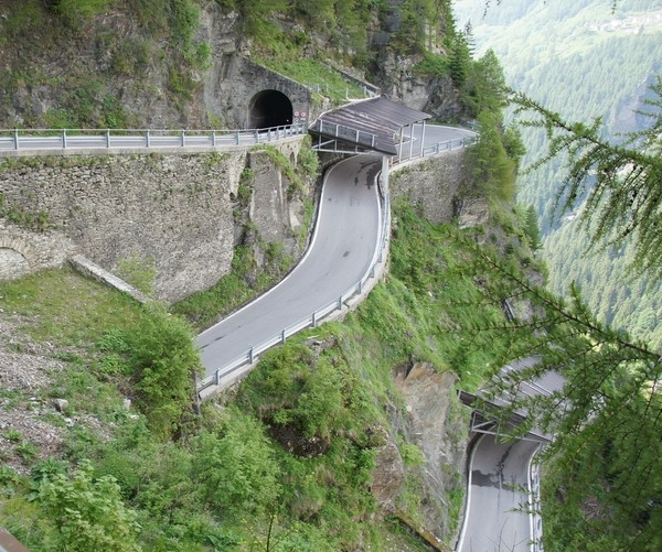 De passage vlak voor Pianazzo is beroemd om zijn haarspeldbochten en galerijen.